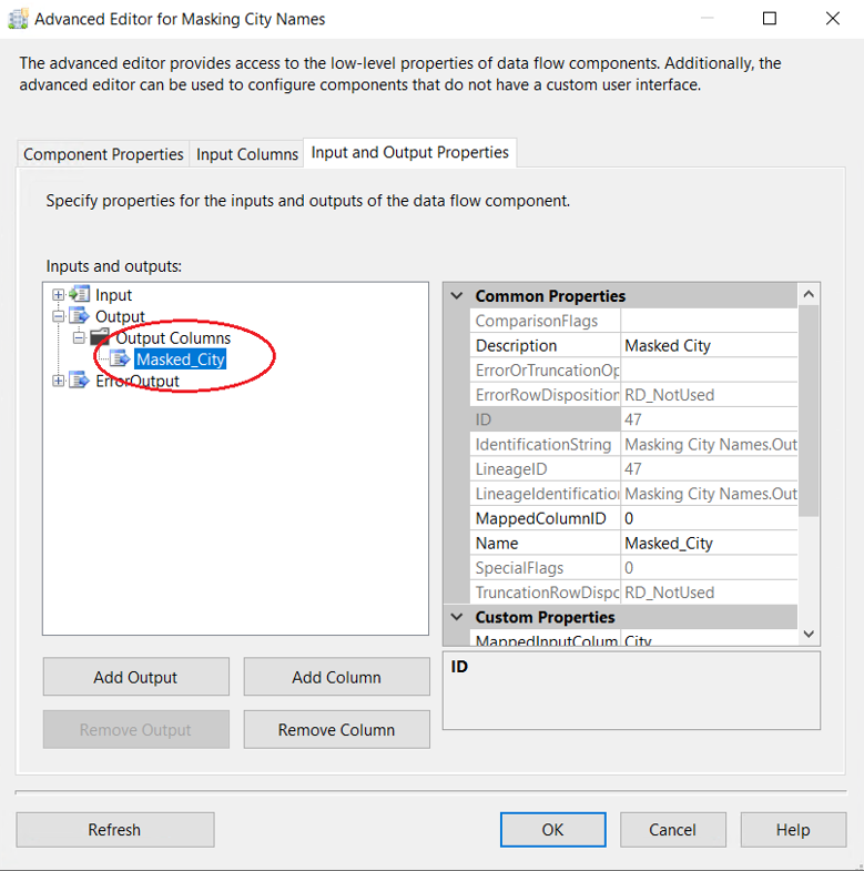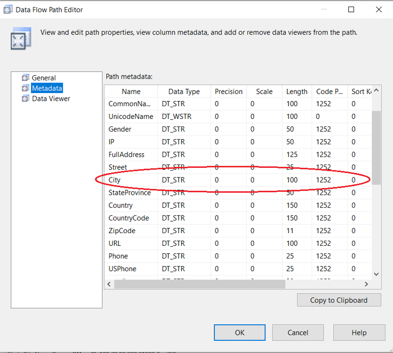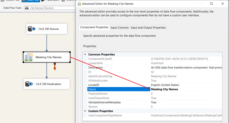 3. Now, the data flow path (the blue arrow) passes proper meta-data to the "Masking City Name" data masking component. If you click on the data flow path, you will see: