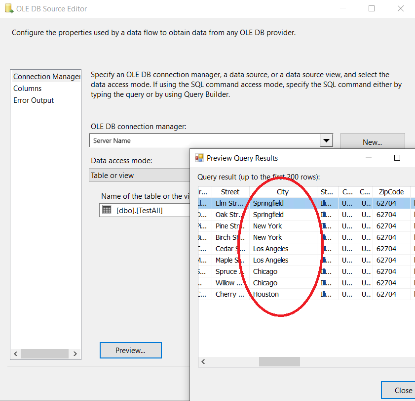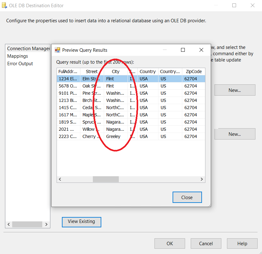 8. Now, all the configurations are complete for the valid values. You can run the package with the City Names Dynamic Data Masking component, and see the results of data masking:
