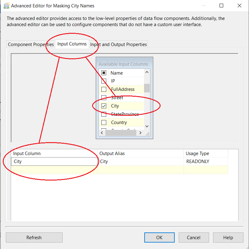 5. In the second tab, there are input columns. Please check-mark only one column, the one that you will be masking with City Names Dynamic algorithm:
