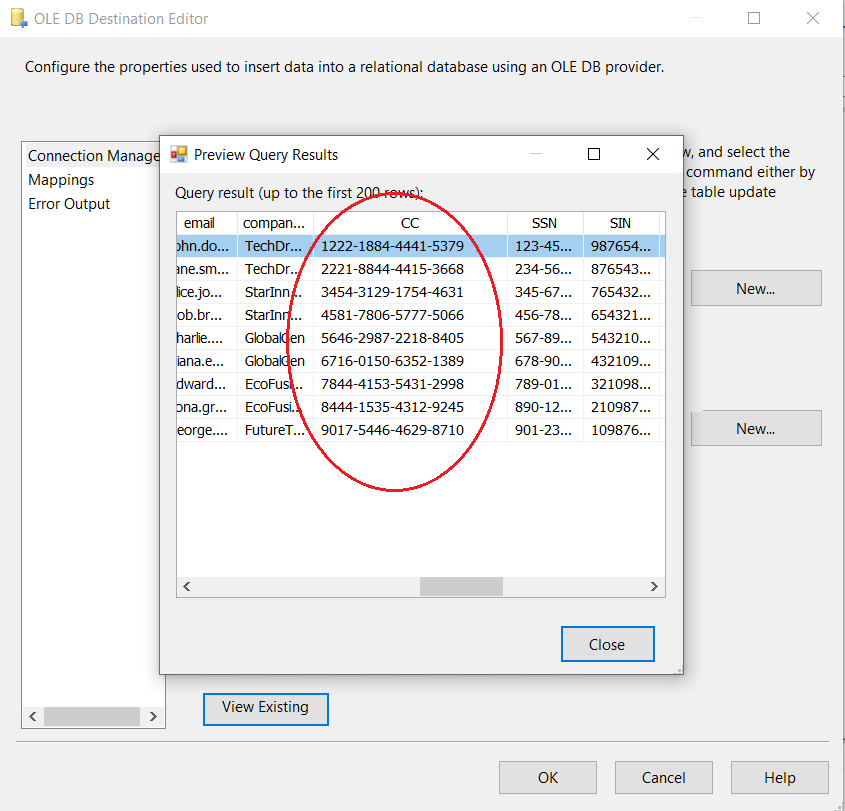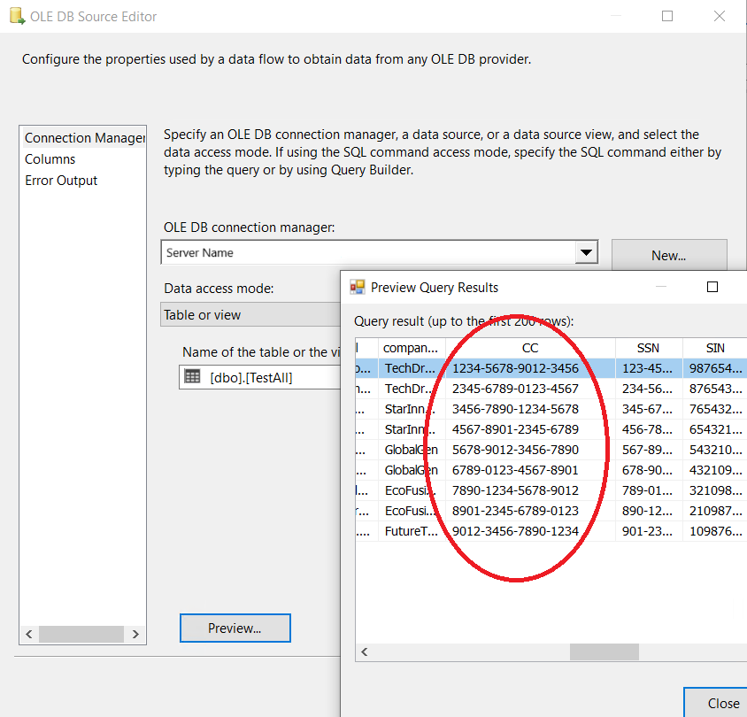 8. Now, all the configurations are complete for the valid values. You can run the package with the Credit Card Dynamic Data Masking component, and see the results of data masking: