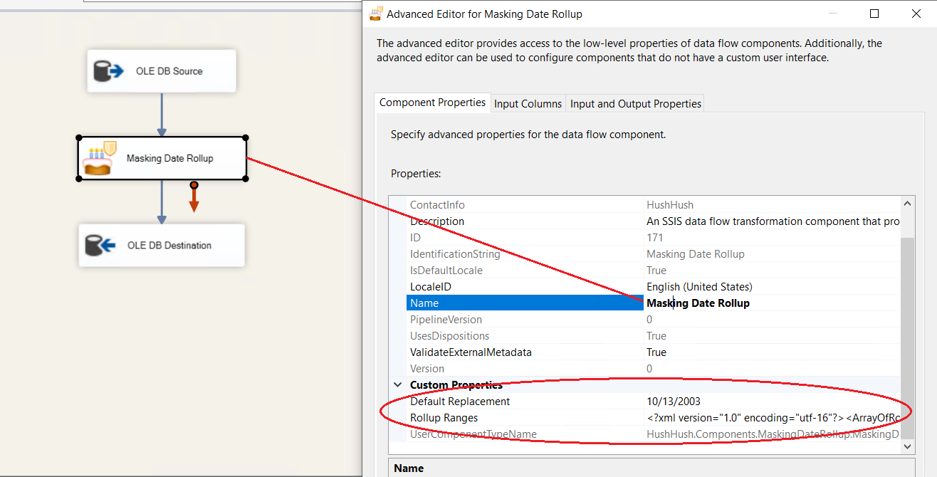 2. Drag and Drop Masking Date Rollup component, connect the source and the Masking Date Rollup component with the source's precedence constraint.