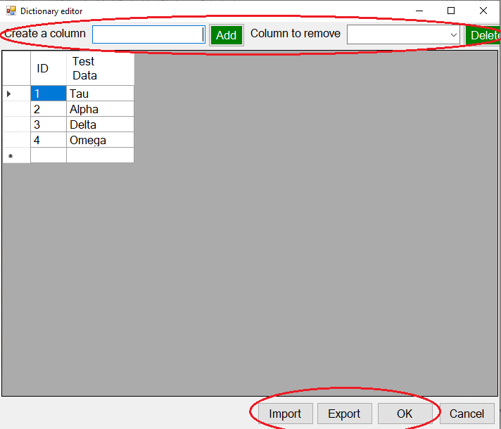 5. In the Custom Dictionary property, click the three dots (...) to open the editor. You can either: