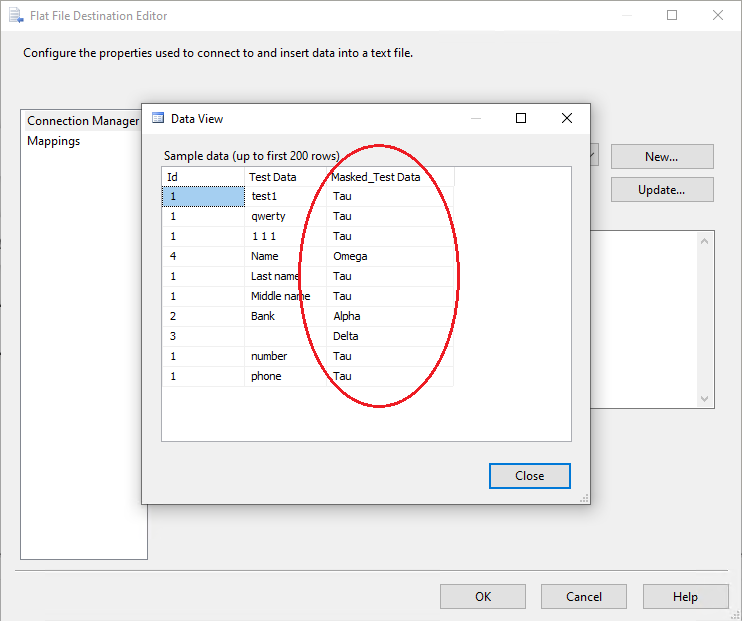 9. Now, all the configurations are complete for the valid values. You can run the package with the Mask Embedded Dictionary Substitution component, and see the results of data masking in the Destination component.
