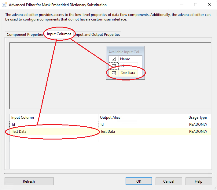 6. In the Input Columns tab, check only the columns you want to mask using the Mask Embedded Dictionary Substitution algorithm.