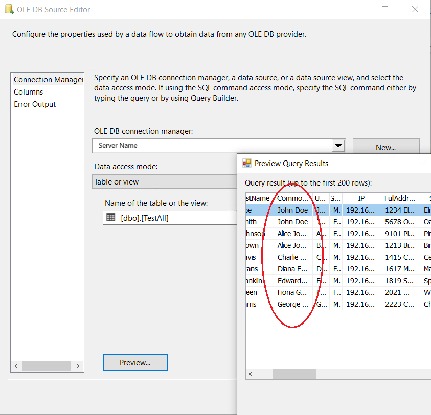 8. Now, all the configurations are complete for the valid values. You can run the package with the Full Name Info Data Masking component, and see the results of data masking: