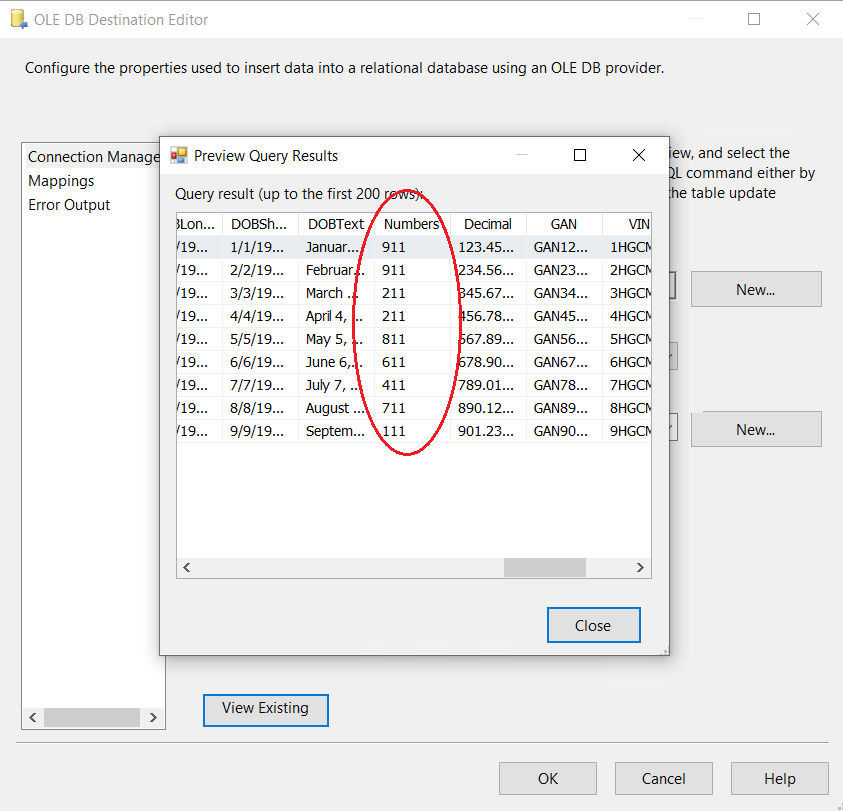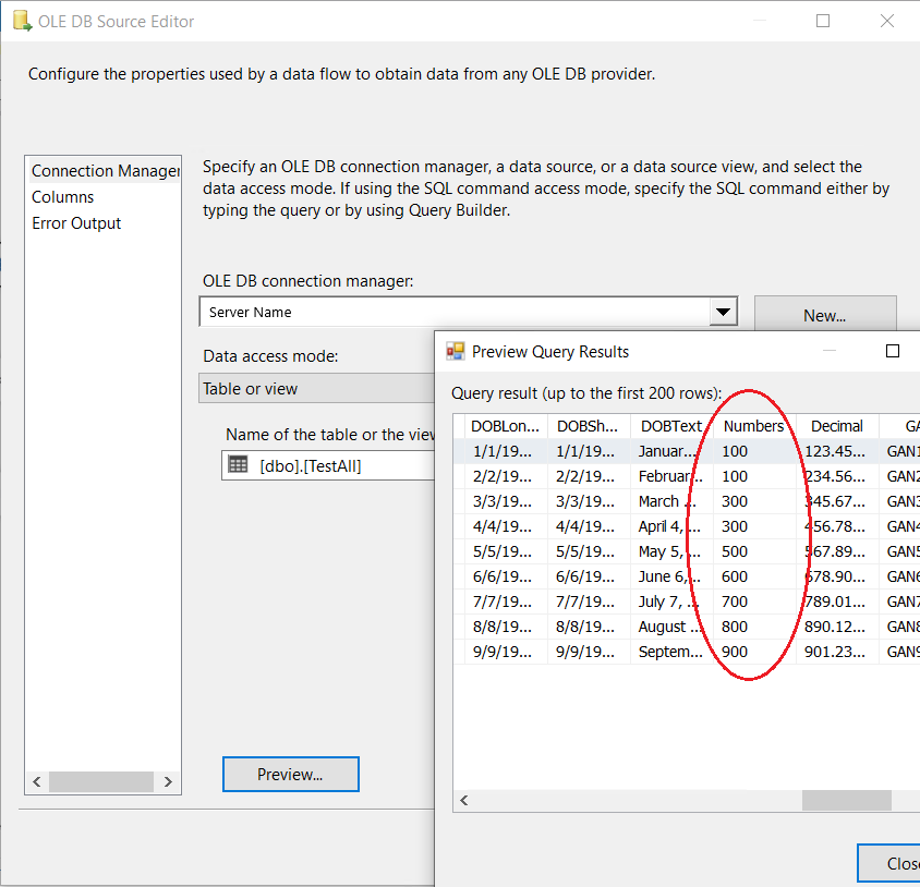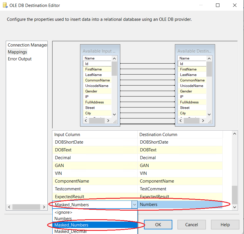 8. All configurations for valid values are now complete. You can run the package with the Generic Numeric Dynamic data masking component and view the masked results in the Destination component by clicking the Preview button.