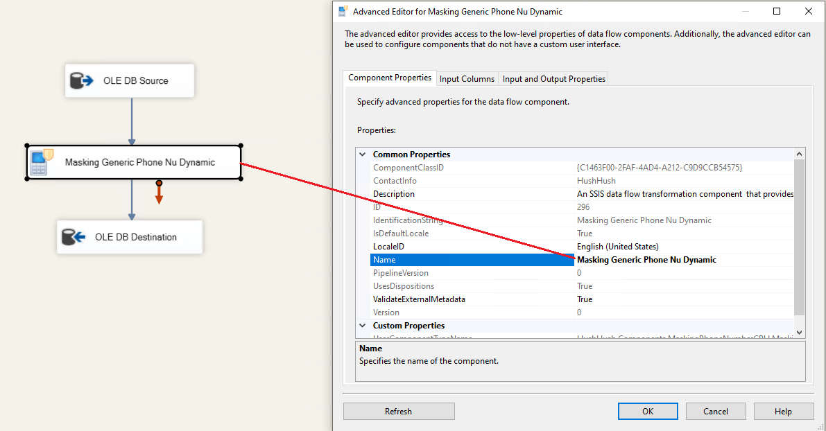 4. Now that the metadata for the Generic Phone Number Dynamic exists, and values are passed into the data masking component, please open the component editor: