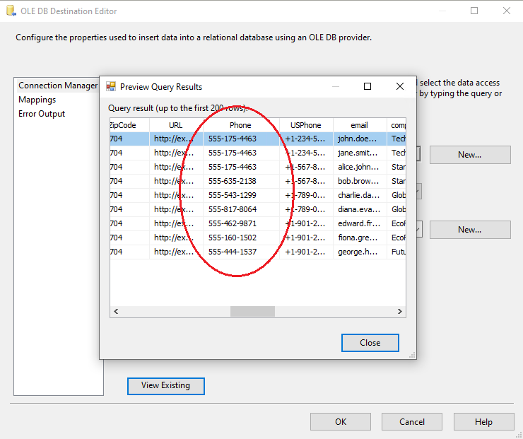 8. Now, all the configurations are complete for the valid values. You can run the package with the Generic Phone Nu Dynamic Data Masking component, and see the results of data masking: