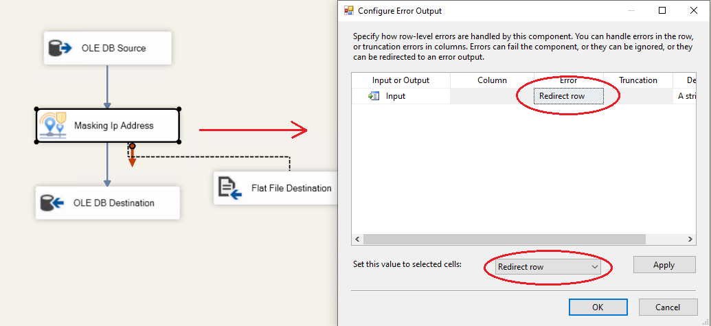 10. It is recommended to redirect the output to the error destination for later analysis and data quality assessment. Errors from the IP Address Dynamic data masking component are highly structured and difficult to break. Therefore, it is advisable to conduct a thorough analysis of the IP address data before determining the appropriate processing approach.