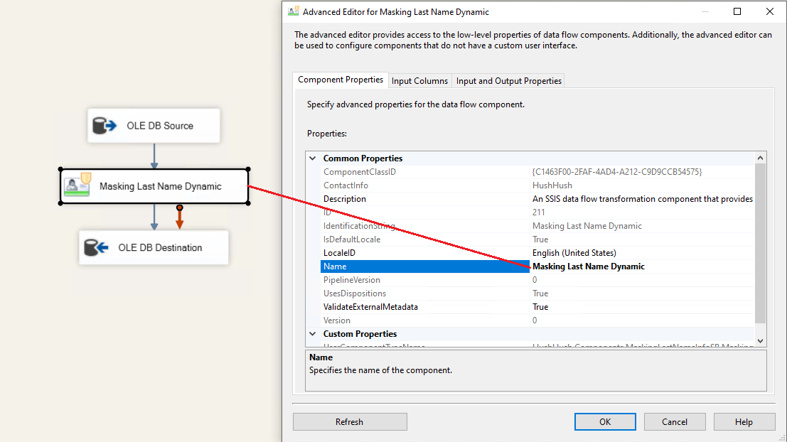 4. Now that the metadata for the Last Name Dynamic exists, and values are passed into the data masking component, please open the component editor: