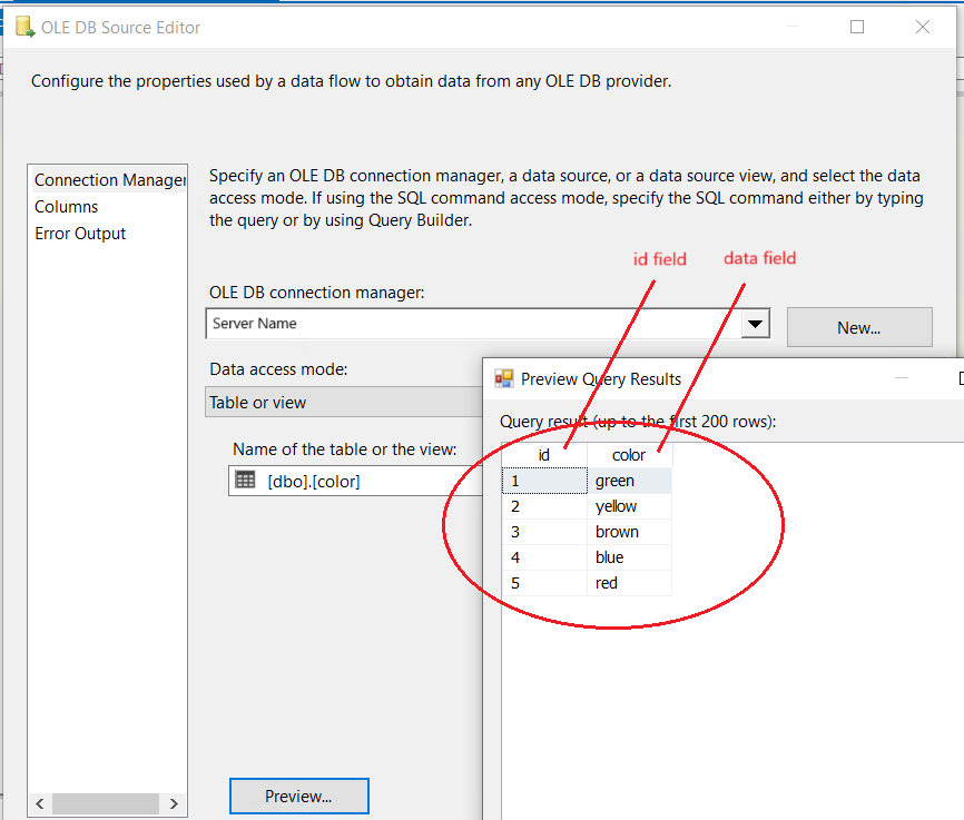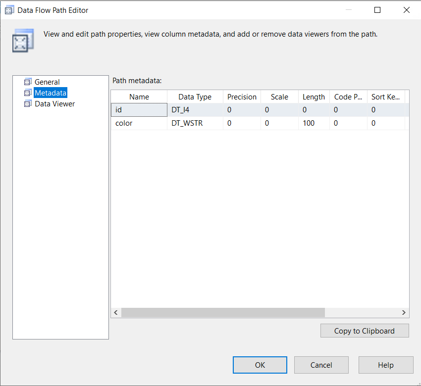 | 7. Now we are done with configuring the Data Dictionary. If we run the package, the package will load values of the colors and their ids into the object variable "User::color". We have created a dictionary out of our own values from the table and now we are ready to start the second part of the Dictionary Substitution Algorithm: the substitution itself. |