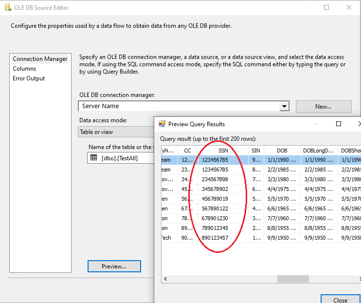 1. Configure a source that contains the column with Social Security value (we assume character data type). The data in the column may also include any characters that will be treated as a separator, such as spaces, dashes and slashes.