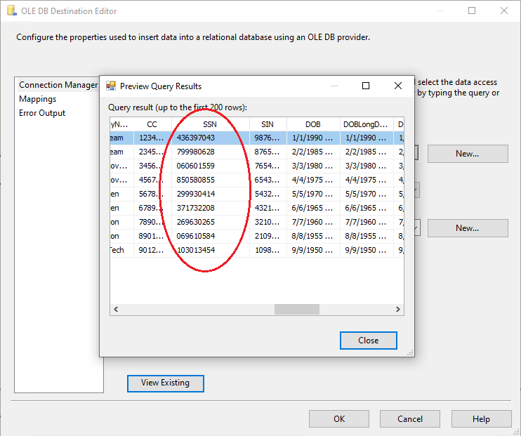 ![]() The SSN Random component maintains all the features of the SSN component and can be used without creating a masking table. The component replaces values on the fly. The SSN Random component recognizes that your current system indeed might have testing records starting with 000,666, 900-999 prefixes. If it encounters these prefixes, it keeps the prefix intact, masking the rest of the number. |