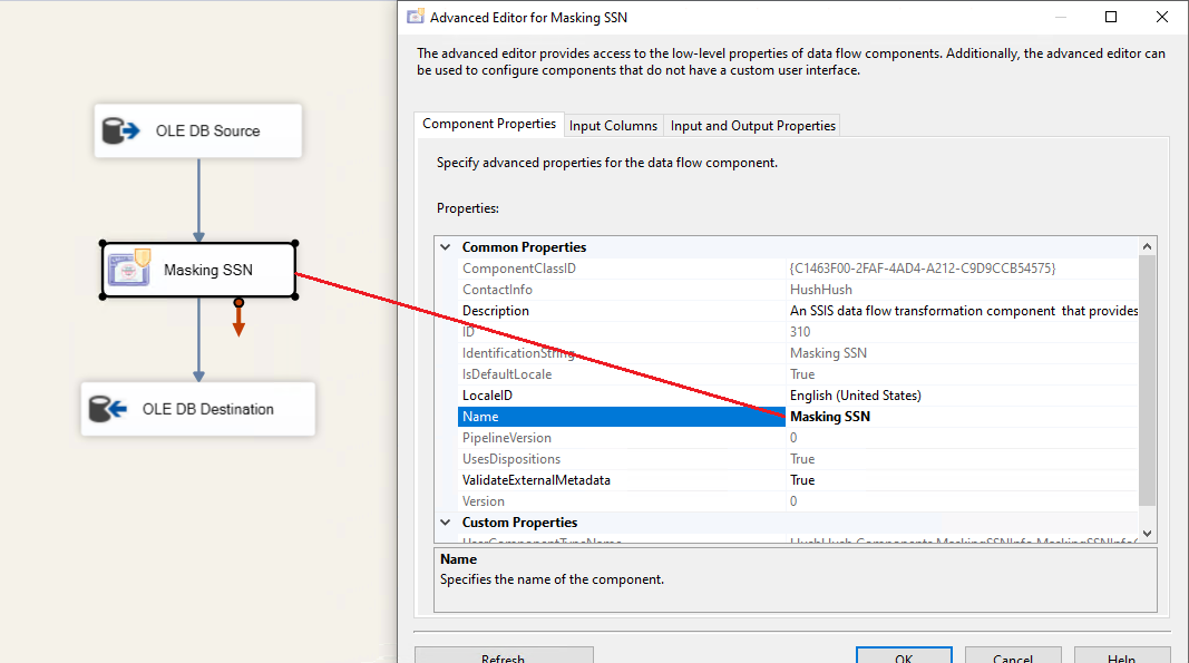 4. Now that the metadata for the SSN exists, and values are passed into the data masking component, please open the component editor: