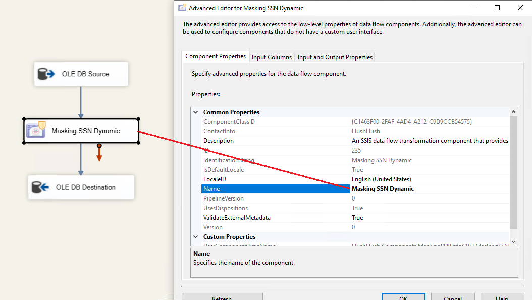 4. Now that the metadata for the SSN exists, and values are passed into the data masking component, please open the component editor: