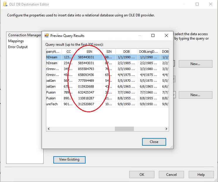 8. Now, all the configurations are complete for the valid values. You can run the package with the SSN Dynamic Data Masking component, and see the results of data masking: