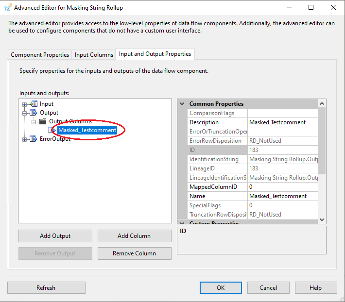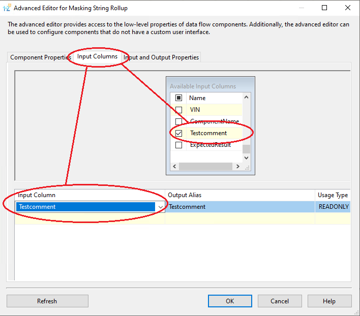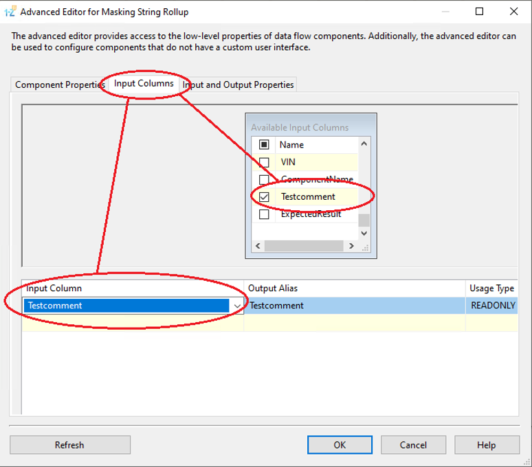 5. In the second tab, there are input columns. Please check-mark only one column, the one that you will be masking with Masking String Rollup algorithm:
