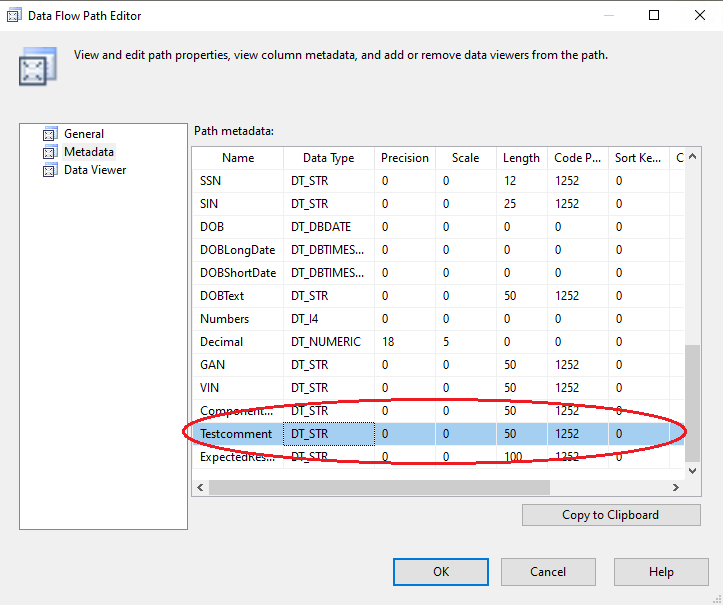 3. Now, the precedence constraint (the blue arrow) passes proper meta-data to the Masking String Rollup component. If you click on constraint, you will see: