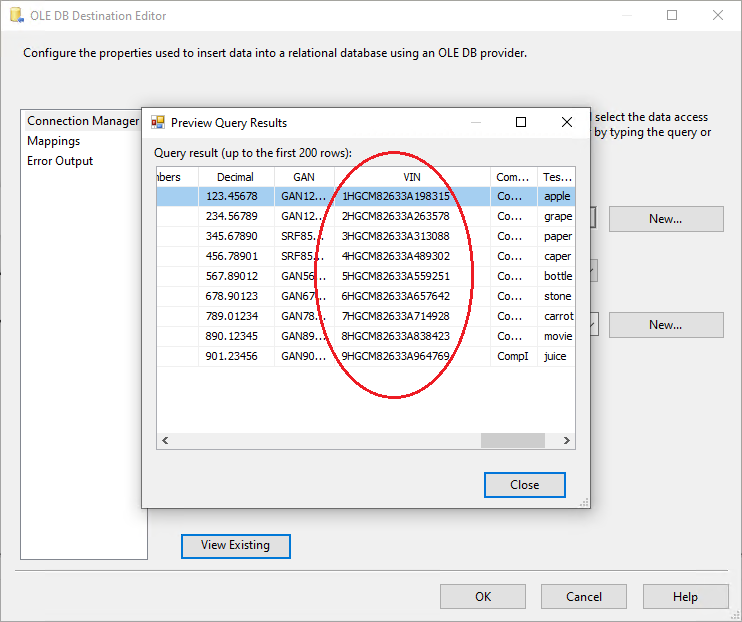 8. Now, all the configurations are complete for the valid values. You can run the package with the VIN Dynamic Data Masking component, and see the results of data masking: